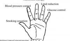 _ Diabetes: “Lend a Hand” Prioritizes Goals By Sondra Forsyth articleThe "lend a hand " illustration that accompanies this article shows an open palm with the five major forms of diabetes interventions are arranged in descending order of importance from thumb to little finger as follows: smoking cessation, blood pressure control, metformin therapy, lipid reduction, and glucose control.